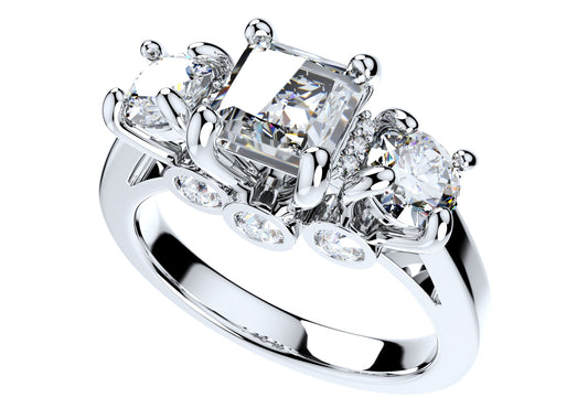 Cushion Side Round Diamonds Trilogy Engagement Ring - TCSRD-ST 3D Print Model
