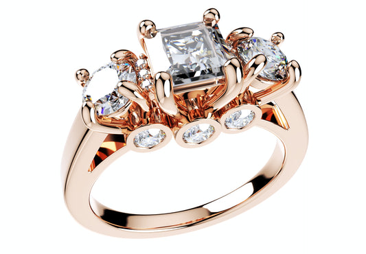 Princess Side Round Diamonds Trilogy Ring Straight Shank-TPSRD-ST 3D Print Model