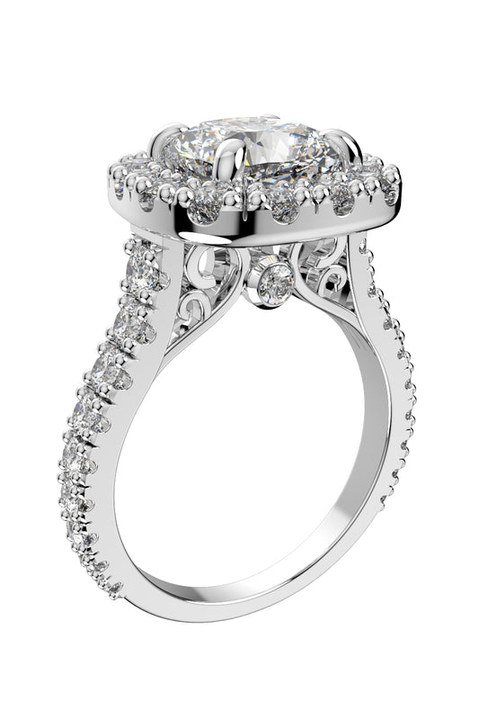 Halo Diamond Cushion Cut Engagement Ring CAD Design-O-1-109