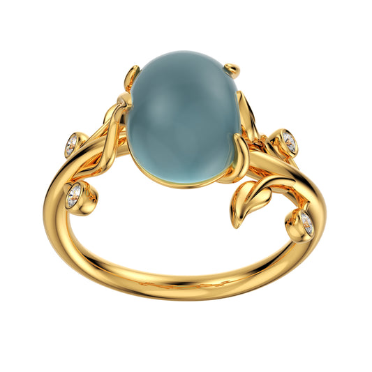 Jewelry Flower Women Ring Oval Cabochon Gemstone 3D CAD Design-JFW07